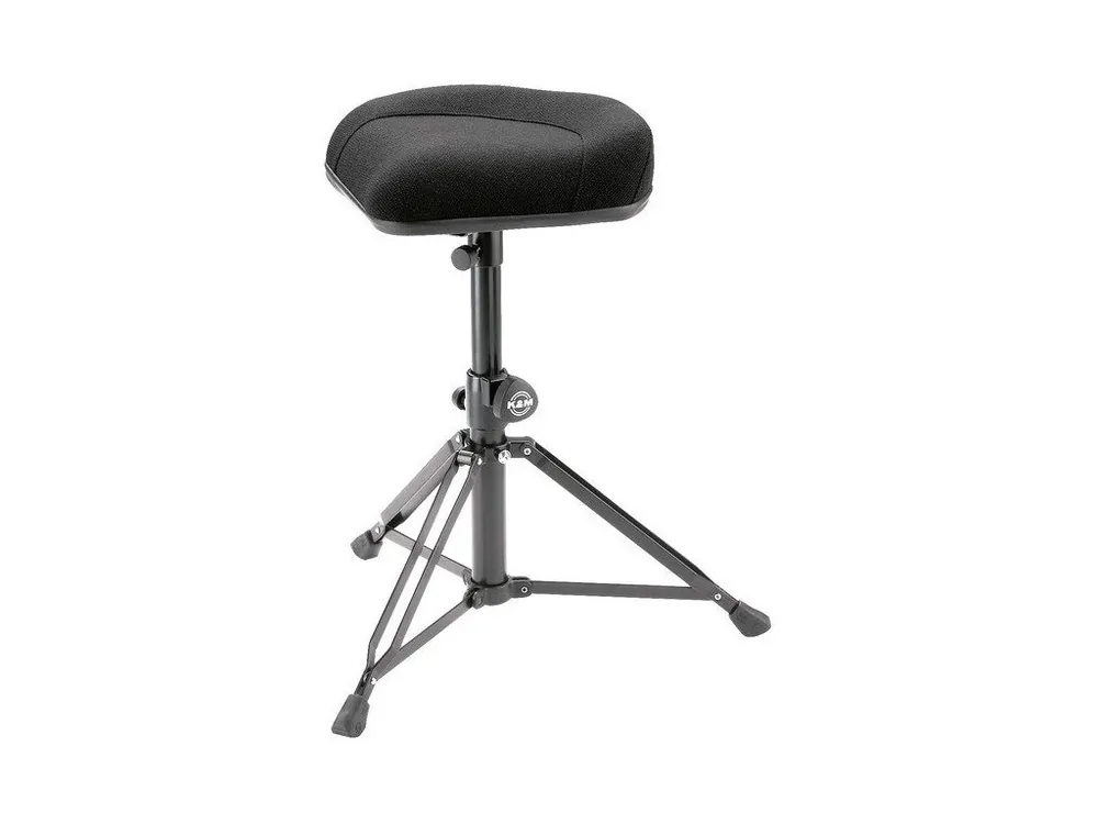 Robustní vysoce kvalitní stolička pro bubeníky. Výška stoličky 480/740 mm. Ergonomicky tvarované sedadlo s rozměry 380 x 350 mm potažené černou tkaninou odolnou proti opotřebení. Vysoká stabilita stoličky díky velkému poloměru třínohé základny. Vyrábí se v černé barvě.