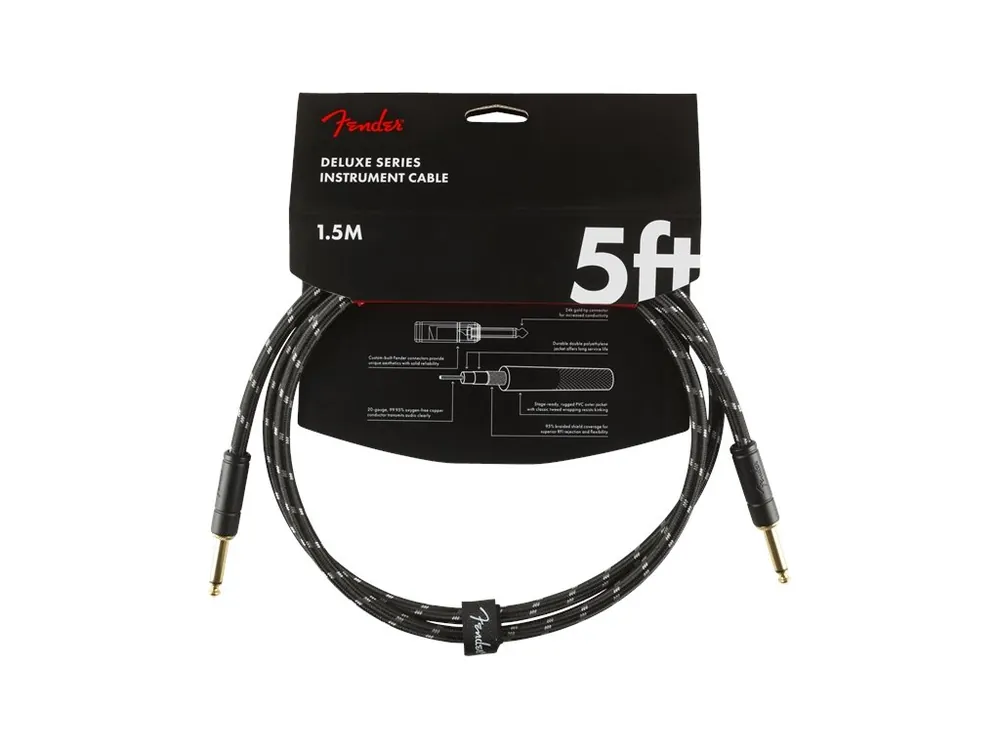 Nástrojový kabel ze série Deluxe je vlajkovou lodí značky Fender. Kombinací kvalitních materiálů a moderního designu vznikl kabel disponující čistým a transparentním přenosem signálu, skvělou vodivostí a v neposlední řade garancí dlouhé životnosti. Konektory pozlacené 24K zlatem jsou zárukou skvělého zvuku, odolný Tweed povrch potom nabízí skvělou ochranu kabelu proti poškození. Součástí balení je kabelová spojka na suchý zip.