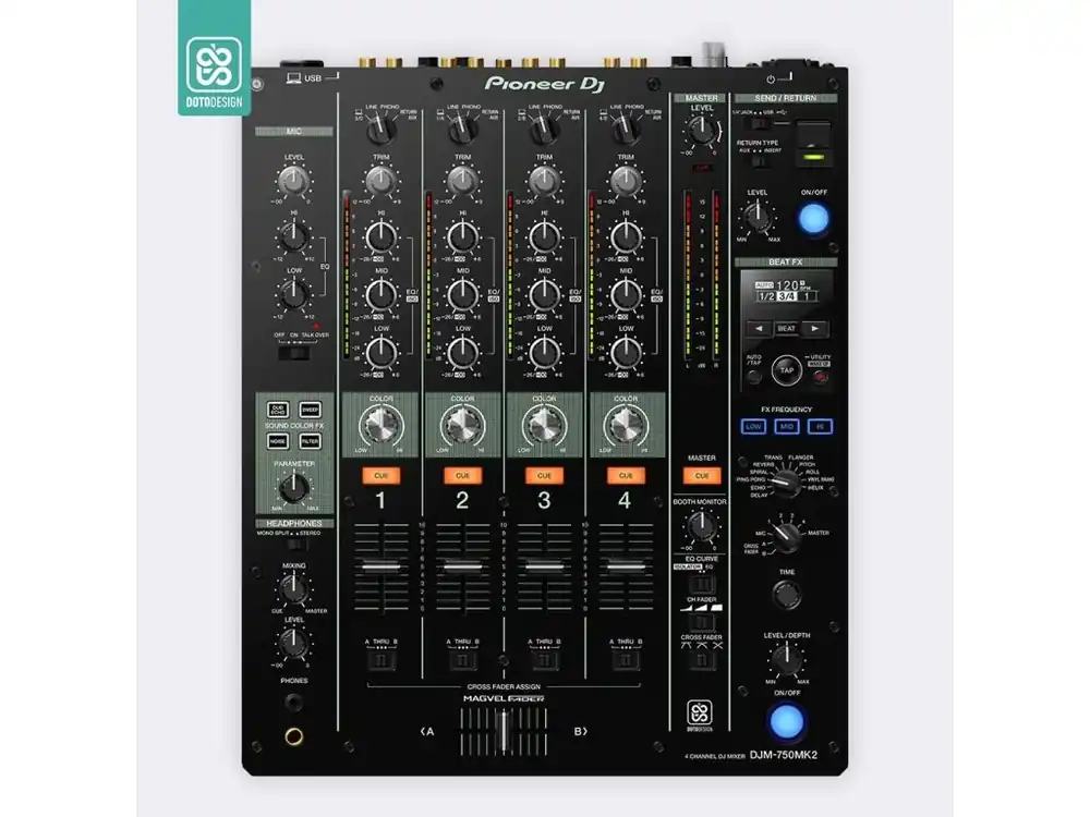 Nalepovací skin pro mixážní pult Pioneer DJM-750 MK2 v provedení COLORS, barva aquamarine (akvamarínová).