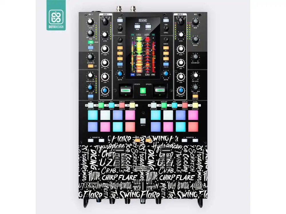 Nalepovací skin pro mixážní pult Rane Seventy-Two 72 MK2 v provedení SCRATCH STYLE, barva black (černá).