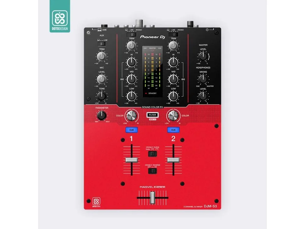Nalepovací skin pro mixážní pult Pioneer DJM-S3 v provedení COLORS DVS, barva red (červená).