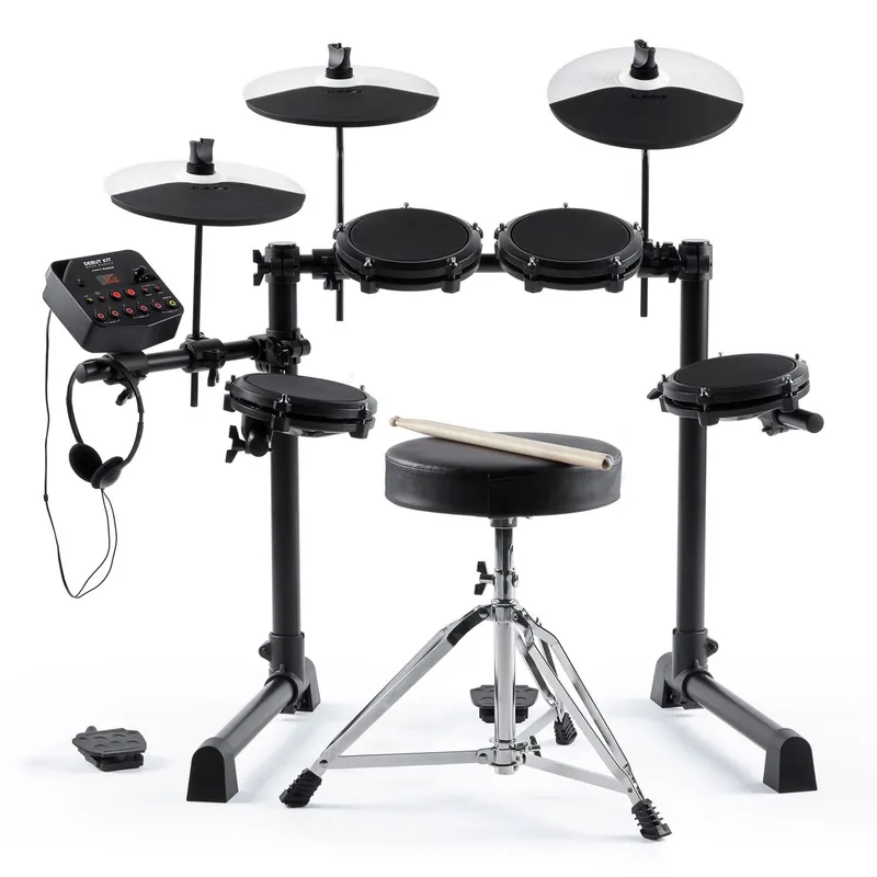Elektronická bicí sada pro začínající hráče od firmy Alesis. Hra na bicí nebyla nikdy dostupnější! Alesis Debut Kit je kompletní elektronický bubenický systém v jedné krabici. Nejedná se o žádnou hračku – sada Debut Kit obsahuje naprosto vše, co potřebujete, abyste mohli začít okamžitě bubnovat. Balení obsahuje 4× 6″ pady bubnů s nastavitelnými síťovými blánami, které mají skvělou odezvu a jsou velmi tiché, bez hluku, jaký známe z gumových padů. Dále zde najdete 3× činelový pad s velkou 10″ hrací plochou, takže vám nikdy neunikne žádný úder. Kopák a hi-hat se ovládají nožními pedály, které lze snadno odložit, pokud se nepoužívají. V neposlední řadě je součástí balení nastavitelná bubenická sedačka, sluchátka pro tiché hraní a pár paliček. Alesis Debut Kit stačí rozbalit, sestavit a můžete začít okamžitě hrát.