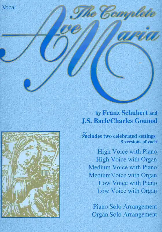 Nejkompletnější komplet jaký si lze představit – tento titul obsahuje dvě nejznámější verze písně Ave Maria, jednu napsal Franz Schubert, druhou od J.S.Bach/Charles Gounod, a každou v osmi různých úpravách. Třikrát pro zpěv (nízky, střední a vysoký hlas) s doprovodem klavíru, třikrát pro zpěv (nízky, střední a vysoký hlas) s doprovodem varhan a také úprava pro sólo piano a sólo varhany. Velmi zajímavý, variabilní a málo vídaný titul !!!