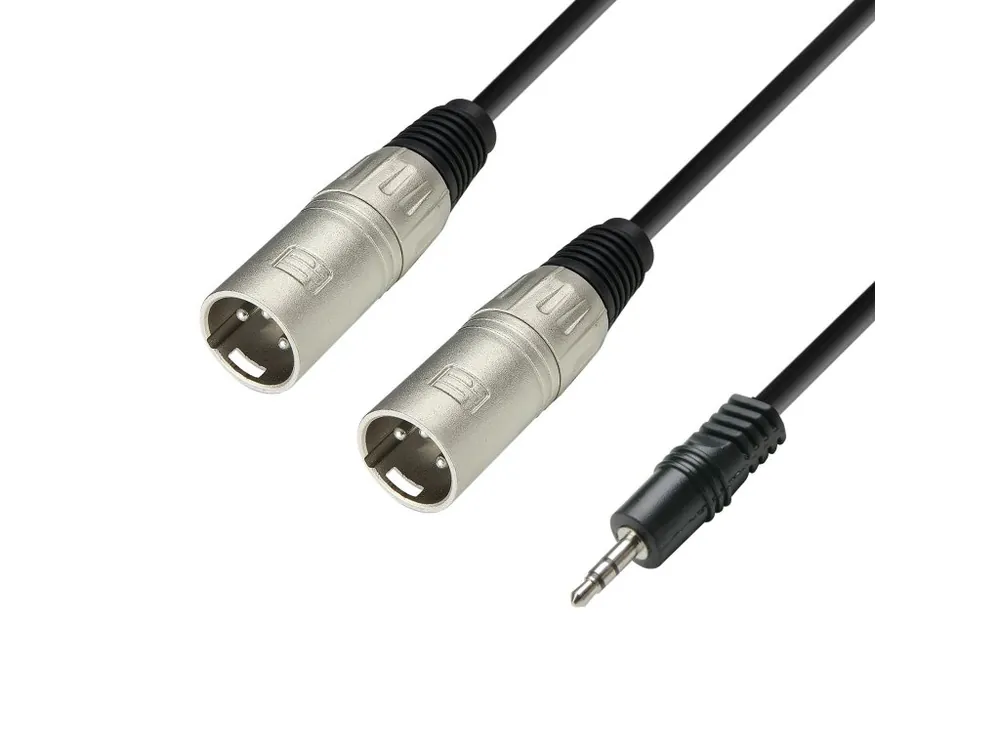 Audio kabel 3,5 mm stereo jack na 2x XLR male. Délka 6 m. Vysoce kvalitní audio kabel s robustními XLR konektory a stereo jack konektorem. Jasné označení kanálů pomocí barevných kroužků a kvalitní materiál kabelů předurčuje jejich použití pro studiové nebo ambiciózní hi-fi aplikace.
