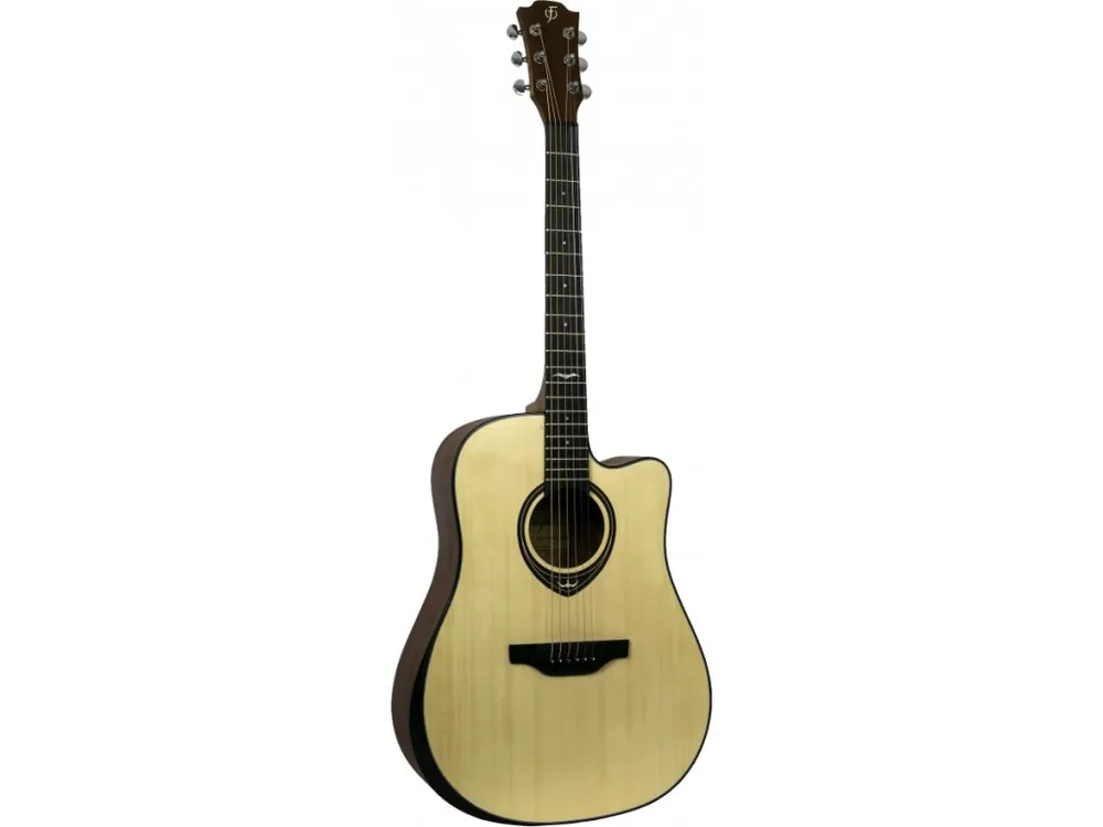 Model Flight AD-555 NA je tvarem nejpoužívanější model dreadnought s výřezem (cutaway) pro snadnější hru ve vysokých polohách. Přední deska je vyrobena z masivního smrku sitka, zadní deska a luby z laminovaného mahagonu. Mahagonový je i krk na kterém je nalepen ebenový (!) hmatník osazený 20. pražci.