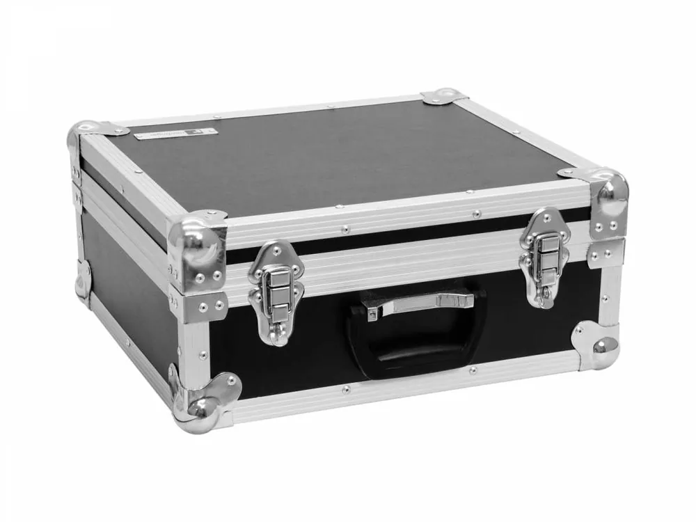 Universal case with high-density foam interior. Customizable pickfoam interior and dividers. Interior can be customized without cutting or further work. High-quality workmanship with plywood multilayered glued, black laminated. Upholstered cover. Aluminum profile frames (22 mm) with rounded edges. Three-leg, medium-sized steel ball corners. 2 high-quality spring locks (lockable). Rugged handle.: Strength: 7 mm