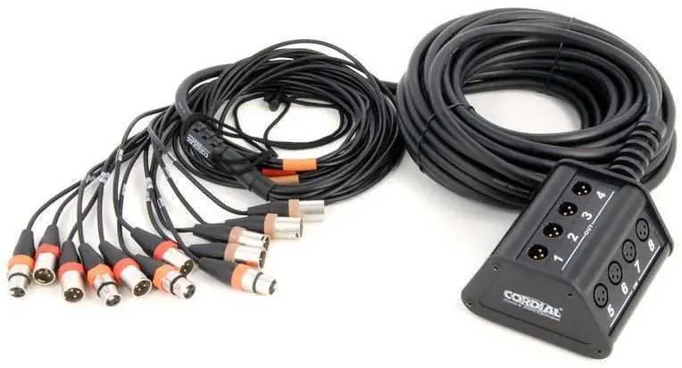 stagebox s mnohožilovým kabelem (párákem), 8 vstupů, 4 výstupy, konektory XLR, délka kabelu 15 m