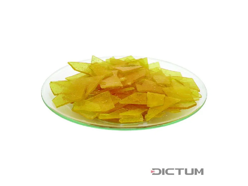 Nabízené šelakové vločky jsou vysoce čisté, zbavené vosku a lze je míchat, aby se vytvořil specificky požadovaný tón nebo efekt