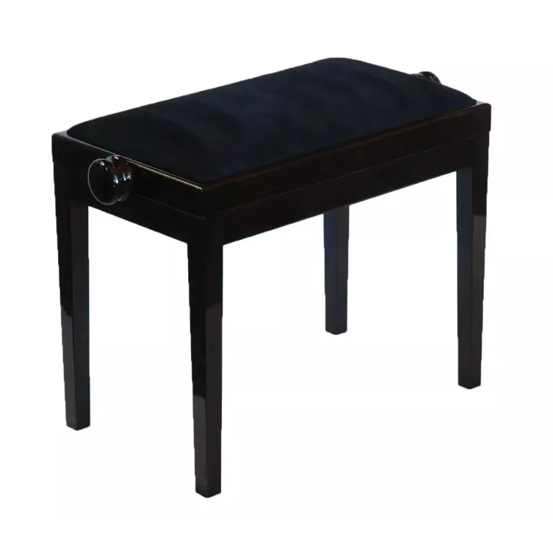 Stolička Discacciati 105R/31/89M s polstrovaným sedákem z materiálu semiš a rovnýma nohama. Je vhodná pro všechny typy digitálních pian, kláves nebo keyboardů. Možnost nastavení výšky stoličky v rozmezí 48 až 58 cm. Stolička je bytelná a má spolehlivou konstrukci. Kvalitní zdvihací mechanismus. Sedák je obdélníkový o rozměrech 55 x 32 cm. Barva dřeva je tmavý ořech lesk (31), barva sedáku je černý semiš (89M). Vyrobeno v Itálii.