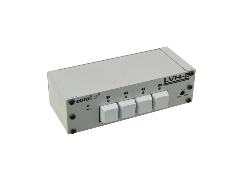 Automatický video přepínač 4:1. Pro přepínání video signálů až ze 4 zdrojů do jednoho výstupu. Automatické přepínání s indikací pomocí LED kontrolek. Doba přepínání je nastavitelná. Každý kanál vybaven tlačítkem pro zastavení sekvenčního režimu. 4 vstupy pomocí průchozího výstupu – BNC konektory. 1 výstup pomocí BNC výstupu. Každý vstup je vybaven paralelním výstupem pro průchod vstupního signálu. Kolektorové výstupy jsou vhodné pro ovládání dalších zařízení. Kompatibilní s NTCS a PAL systémem. Kompaktní kovové provedení. Napájení 12-24 V DC, připojení napájení pomocí svorkového terminálu.