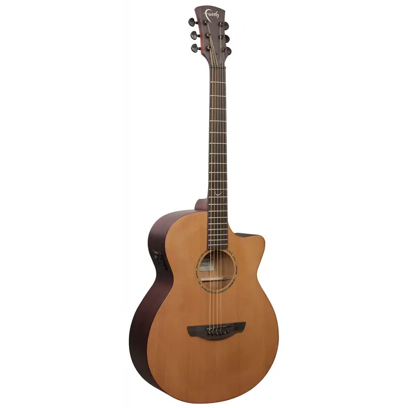 Celomasivní elektroakustická kytara typu venus přírodní provedení satin s přední deskou z cedru a zadní deskou a luby z mahagonu. Také krk je mahagonový, hmatník s rádiem 16″ a kobylku tvoří ebenové dřevo. Na nultý pražec a kobylkovou vložku je použit NuBone. Šířka nultého pražce je 43 mm. Hardware má chromové provedení. Nástroj je osazen značkovou elektronikou Fishman Presys1 s integrovanou ladičkou a je dodáván včetně ochranného obalu Faith.