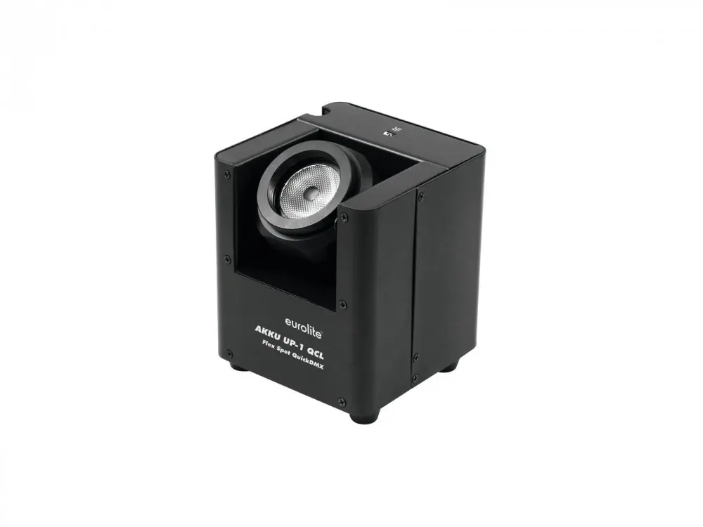 Podlahová LED hlavice se zabudovanou baterií a bezdrátovým přijímačem QuickDMX pro mobilní aplikace. Světelný efekt je osazen 1x 15W QCL diodou, součástí dodávky je IR dálkové ovládání Eurolite IR-13. Statické barvy, RGBW míchání barev, zabudované automatické programy, funkce stmívání a Strobo efekt. Dobíjecí lithium-iontová baterie až na 18 hodiny samostatného provozu (v závislosti na programu), automatický systém dobíjení s LED indikací. Ovládání signálem DMX (přijímač pro bezdrátový příjem signálu DMX512 nebo standardní připojení pomocí XLR konektorů), ovládání zvukem pomocí zabudovaného mikrofonu s nastavitelnou citlivostí, samostatný chod v režimu Stand-alone, funkce Master/Slave. Ovládací panel s LCD displejem pro adresování a nastavení provozních režimů, spínaný napájecí zdroj (100-240V). Napájení pomocí P-Conu, díky průchozímu napájecímu konektoru lze sériově zapojit až 8 zařízení. Ideální bezdrátový barevný reflektor na prezentace, soutěže, výstavy, veletrhy i pro mobilní párty apod.