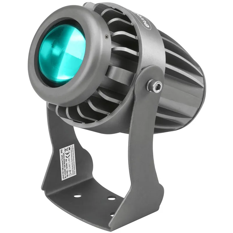 Venkovní LED bodový reflektor osazený 1x 10W tyrkysovou LED diodou s vyzařovacím úhlem 4°,krytí IP 65, hliníkové pouzdro.