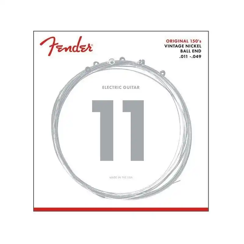 Sada strun Fender pro elektrickou kytaru; ocelové jádro a vinutí z niklu; tvrdost: 011″/ 049″.