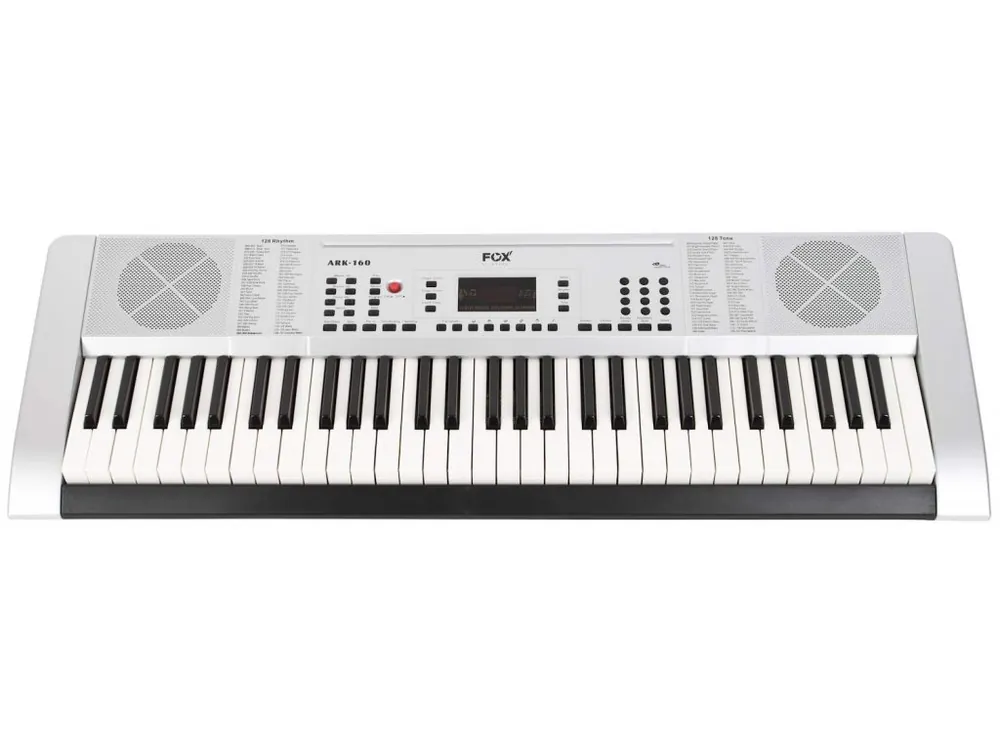 FOX 160 nabízí 61 kláves standardní velikosti, 128 zvuků a 128 automatických doprovodů. Nechybí ani pokročilé funkce jako Split (rozdělení klaviatury pro hru na dva nástroje zároveň), Dual Voice (vrstvení zvuků), nebo nastavení Sustainu (dozvuku) a Vibrata.