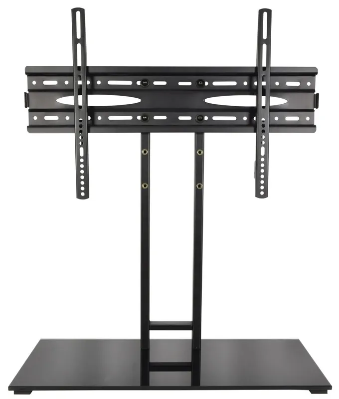 Stylový, atraktivní a univerzální TV podstavec, který spolehlivě udrží všechny aktuální modely LED a LCD obrazovek ve velikostech od 32″ do 65″. Bytelné černé provedení se skleněnou základovou deskou, která může sloužit jako police na televizní příslušenství.
