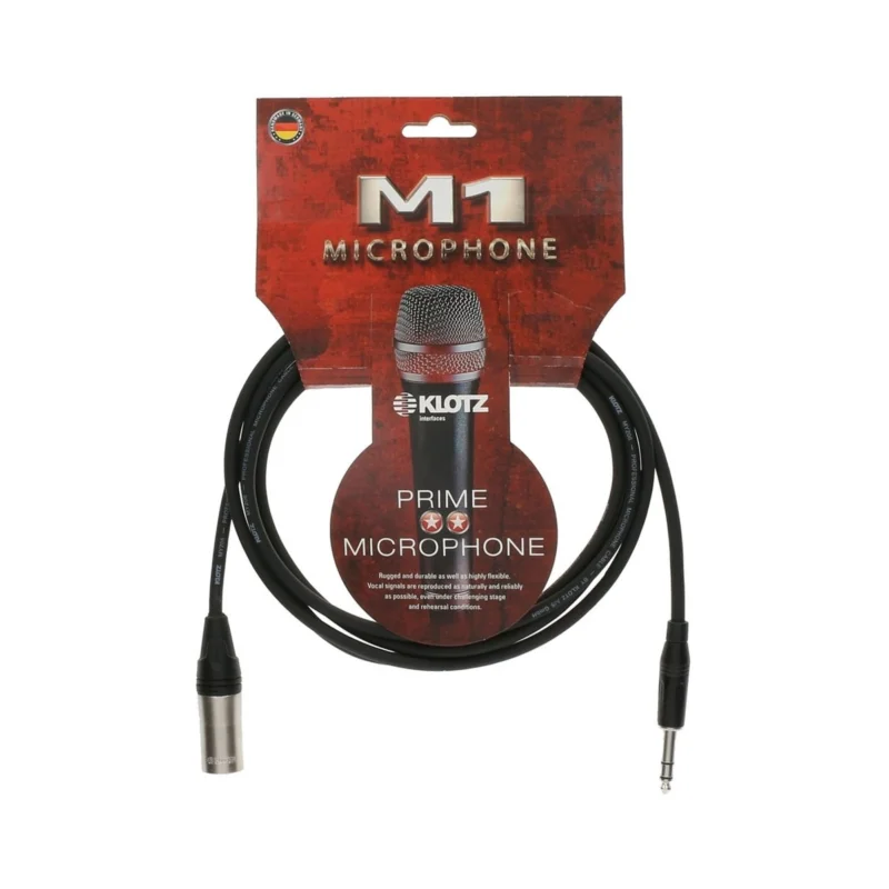 Klotz M1 MSK1K1000 je mikrofonní kabel o délce 10 m. Na jedné straně je zakončen samcem XLR konektoru Klotz, na druhé pak rovným stereofonním jack konektorem 6,35 značky Amphenol. Je tedy vhodný pro vedení symetrického signálu. Jádrem jsou dva svazky 28 signálových drátů o celkovém průřezu 0,44 mm2. Ty jsou podpořeny bavlněnou vycpávkou kvůli konstantní kapacitě a snížení pohybových hluků. Dielektrikem je polyethylenová vrstva izolace přímo na signálovém vodiči. Celý svazek je pak stíněn opletem z mědi a chráněn izolací z matného černého PVC. Kapacita kabelu je špičkových 60 pF/m, vyniká výbornou ohebností a mechanickou odolností. Jeho celkový průměr je 6,15 mm.