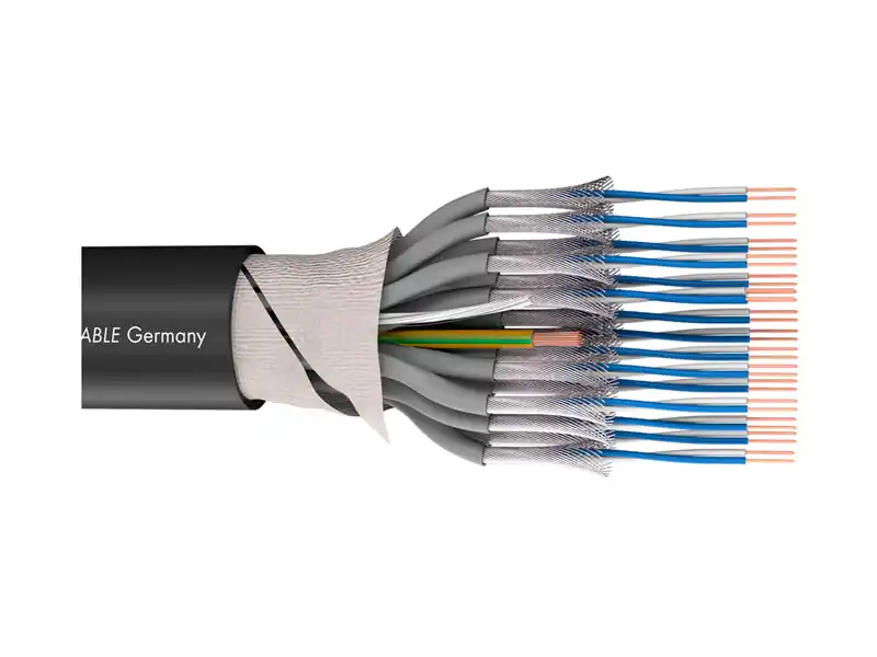 Multipárový audio AES/EBU kabel QUANTUM QMC48 poskytuje kvalitní vedení pro Live a studiové aplikace, ale nachází své místo i pro pevné instalace. Využití pro analogový a digitální přenos signálu. Použita vysoce kvalitní OFC měď s čistotou 99,99%. Lankové jádro vodiče s konstrukcí 36×0,07mm jemných spletených drátků s velmi nízkou kapacitou 45 pF. Díky tomuto jemnému spletení je kabel skvěle ohebný. Jednotlivé páry jsou v samostatném číslovaném S-PVC. Jemné měděné spirálové stínění s faktorem 98%. Odolný a extrémně ohebný S-PVC obal s dostatečně silnou stěnou o tloušťce 2mm. Hodnoty kabelu QUANTUM QMC48 – 48x symetrický kabel, průřez spletených páru 48x2x0,14mm, celkový průměr S-PVC 29mm, 98% stínění, hmotnost 1m 950g, teplotní rozsah použití -25°C až 80°C, barva černá.