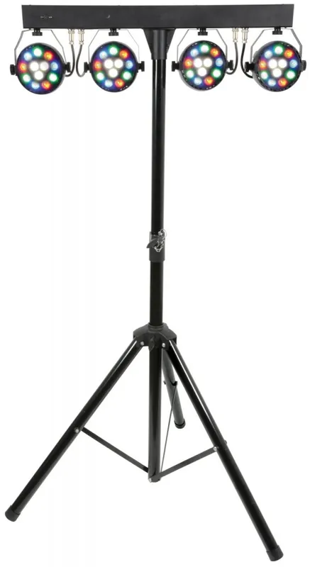 Obsahuje světelnou lištu se čtyřmi LED PAR reflektory (12x 1W LED RGB), světelný stojan a IR dálkový ovladač a přepravní tašku. Řídící panel na liště s LED displejem, ovládání hudbou nebo pomocí DMX signálu, automatický provozní režim s funkcí Master/Slave. Dodáváno včetně stativu, IR dálkového ovladače a přepravní brašny.