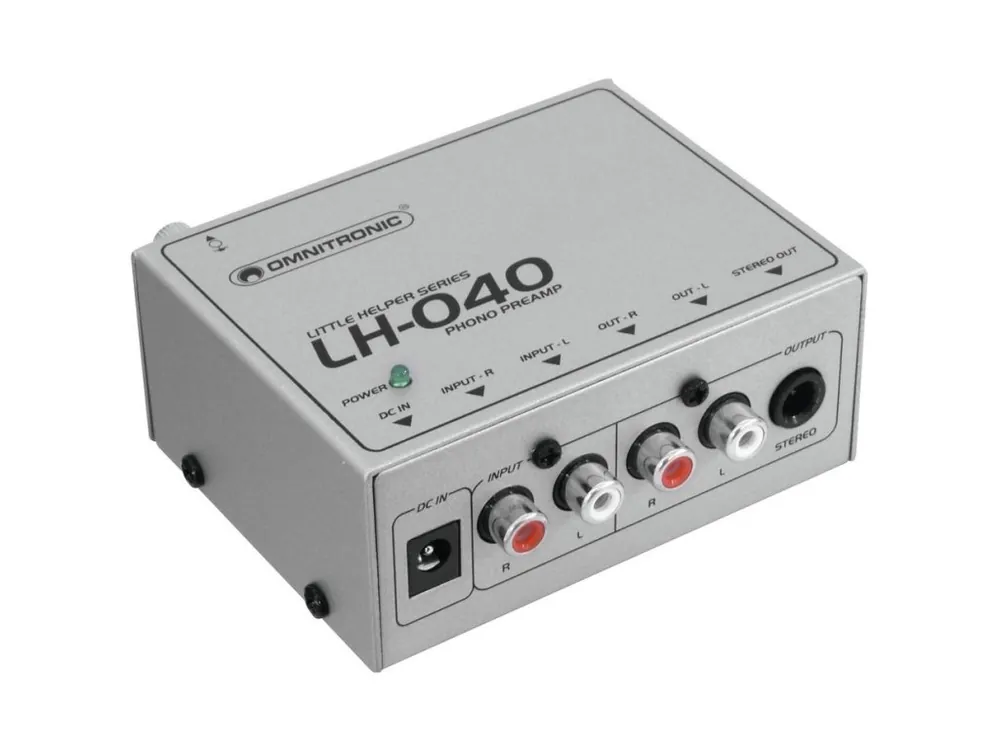 Gramofonový předzesilovač pro připojení gramofonu do linkového vstupu mixážního pultu nebo zesilovače, indikace napájení, rozměry 95x73x45mm, hmotnost 454g, uzemnění.