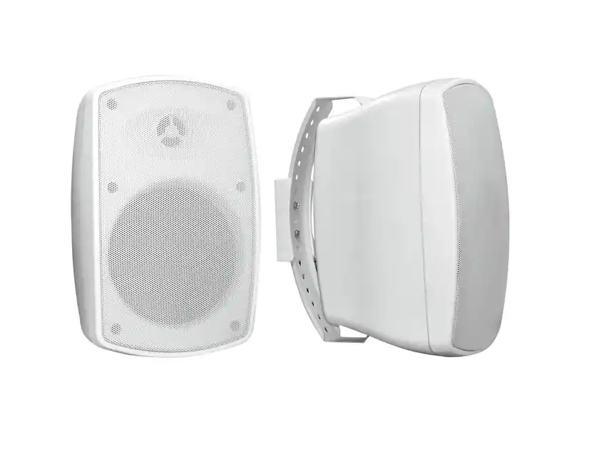2-pásmové reproduktory s 13,5 cm basovým reproduktorem (5,25″) a 1,5 cm výškovým reproduktorem (0,5″). 100V program s vynikajícím zvukem pro všeobecné použití. Plastový kryt odolný proti povětrnostním vlivům (IP65) s kovovou mřížkou a krytem konektorů. 100 V transformátor se 4 odbočkami (2 W, 4 W, 8 W a 16 W). Přepínač výkonu vč. 8 ohmů. Posuvný a naklápěcí montážní držák umožňuje instalaci na strop nebo na stěnu ve většině úhlů. Připojení pomocí šroubových svorek. Baleno jako pár. Pro vnitřní i venkovní umístění.