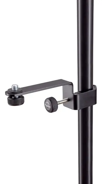 je držák mikrofonu s 3/8″ závitovým připojením, který snadno připevníte na konstrukci stojanů s tubkou o průměru až 30 mm.