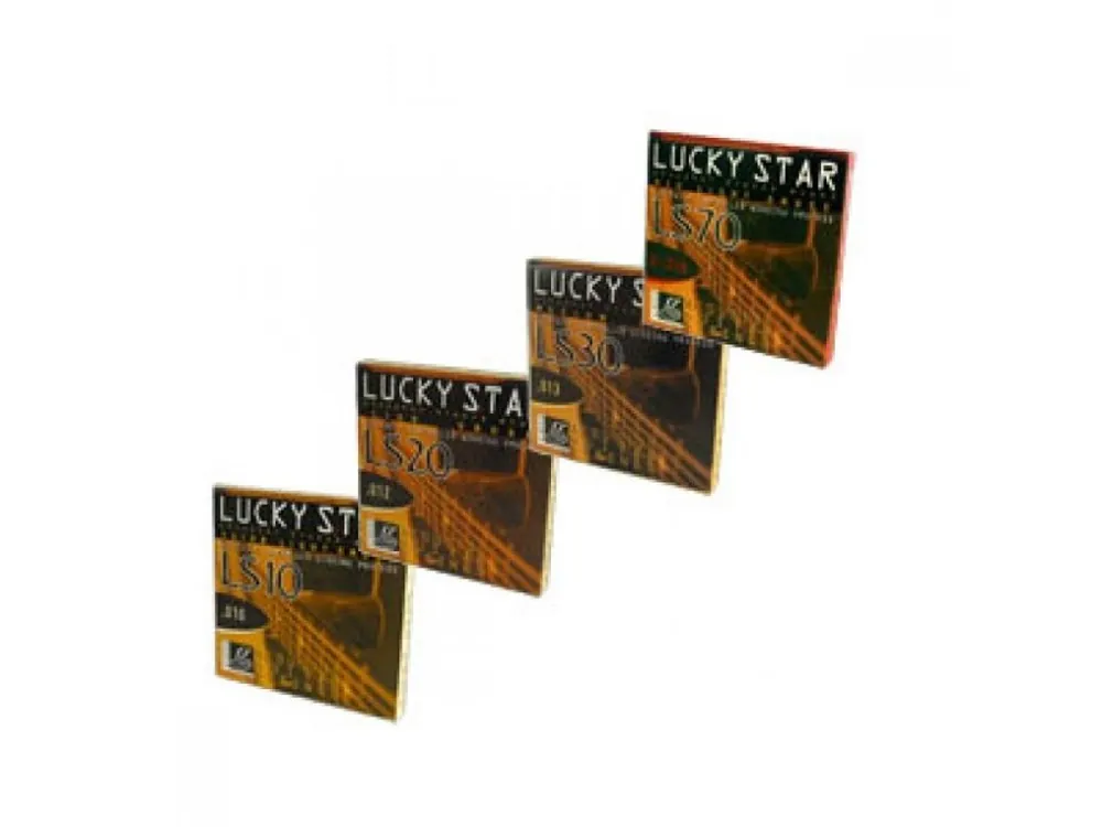 Kusové struny pro akustické kytary Lucky Star. Neopředené struny PS jsou z vysoce kvalitní oceli. Struny s Phosphor Bronzovým opředením PW mají šestihranné ocelové jádro.