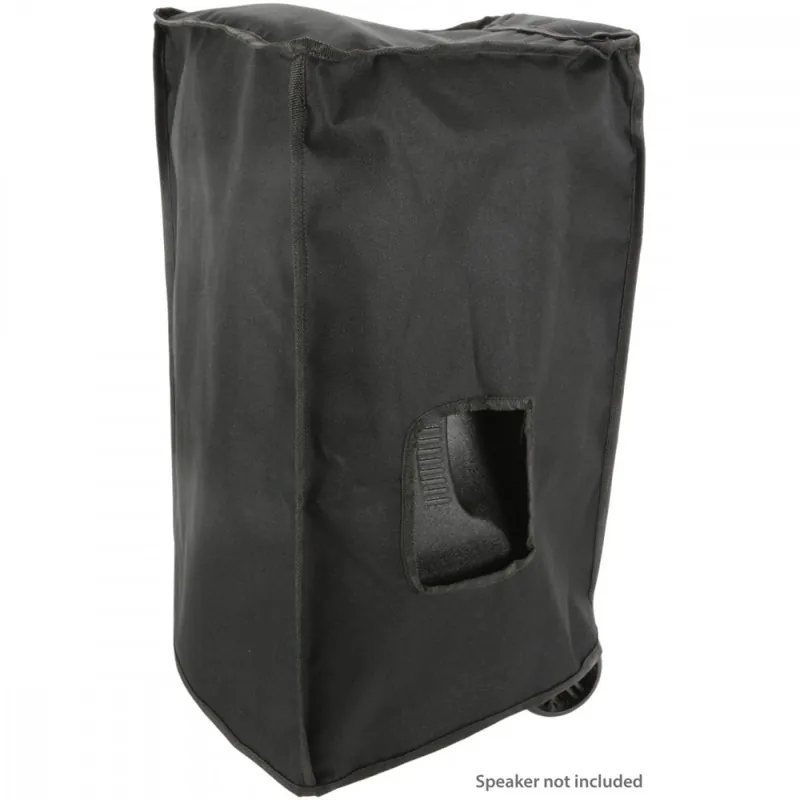 Ochranný obal pro 12“ reprobox QTX série Busker (SA178866). Voděodolné provedení z pevné tkaniny, otvory pro teleskopické a postranní madla.