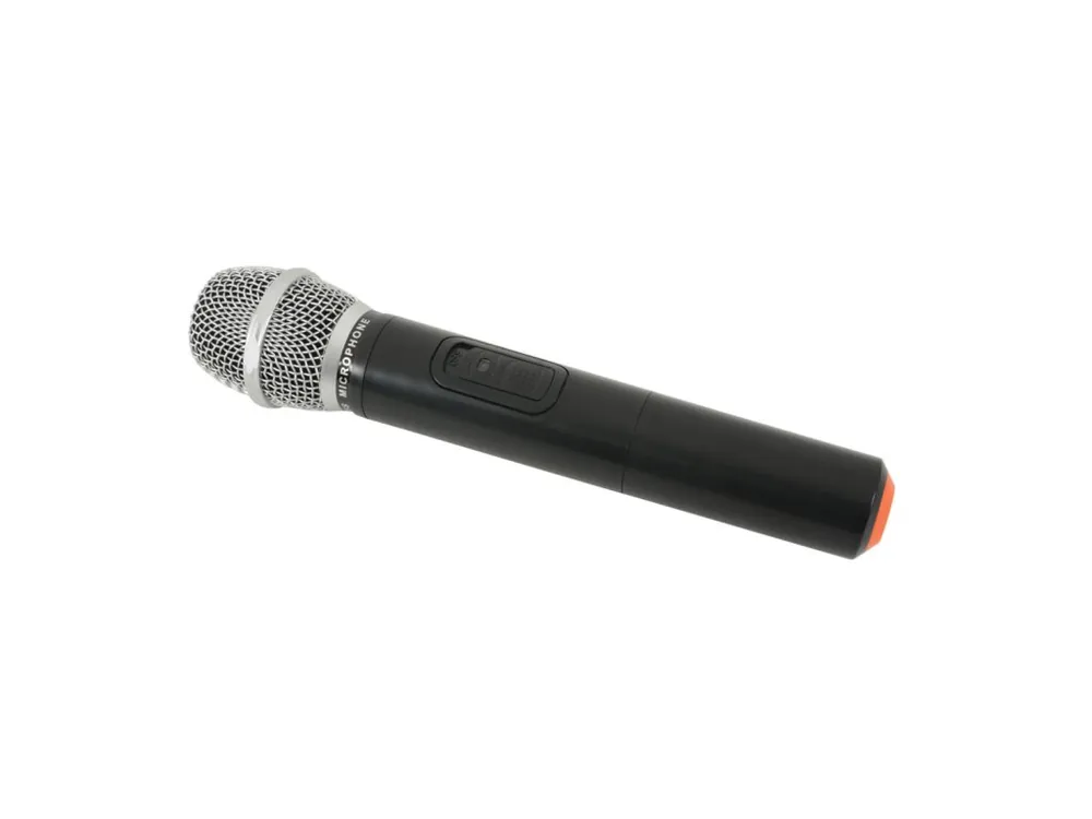Bezdrátový UHF ruční mikrofon pro QTX zvukové systémy série QXPA-plus a PAV8. Technologie pro eliminaci rušení signálu, přenosová frekvence 863.8 MHz.