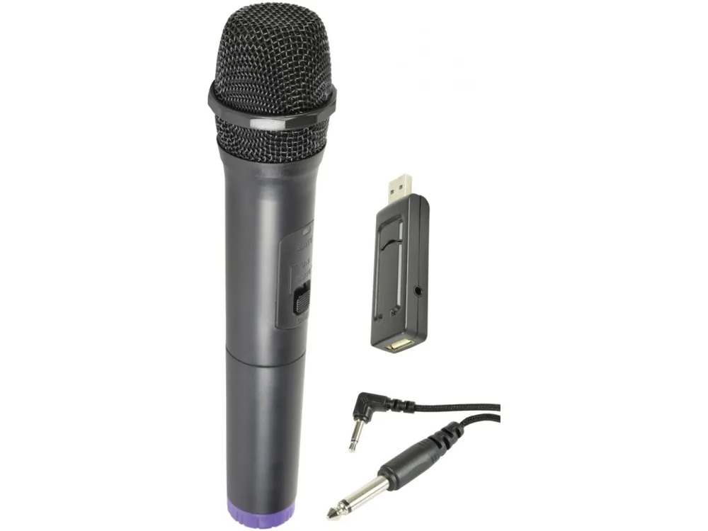 Kompaktní a snadno nastavitelný bezdrátový mikrofon UHF s USB přijímačem. Přijímač se jednoduše připojí k napájecímu zdroji USB a výstupy do zásuvky 3,5 mm jack. Na přijímači je k dispozici zásuvné připojení USB, které umožňuje, aby byl port USB nadále používán pro připojení k médiím nebo jiným zařízením USB (např. pro port mp3 přehrávače). Ruční vysílač je napájen 2x AA bateriemi a pracuje na jedné ze 2 UHF frekvencí.