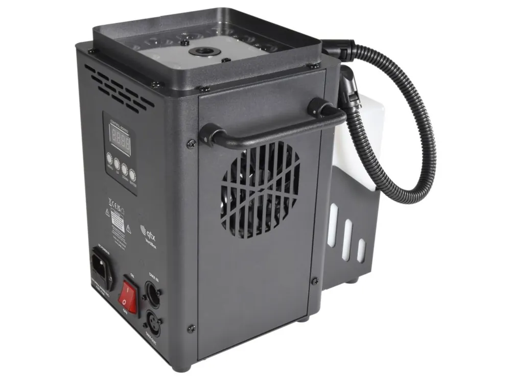 Malý a výkonný QTX VertiBox vytváří působivý proud vertikální umělé mlhy. Díky zabudovaným RGBA LED diodám lze zvýraznit výfuk kouře světelným efektem. Ovládání jednotky pomocí zabudovaného panelu s LED displejem přímo na přístroji, pomocí dodávaného bezdrátového ovládání v podobě klíčenky nebo pomocí DMX signálu (8 kanálů). Odnímatelná 1,2 litrová nádoba na kapalinu, rukojeť pro snadnou manipulaci. Vysoký výkon poskytuje za minutu zamlžení více jak 500 m³.