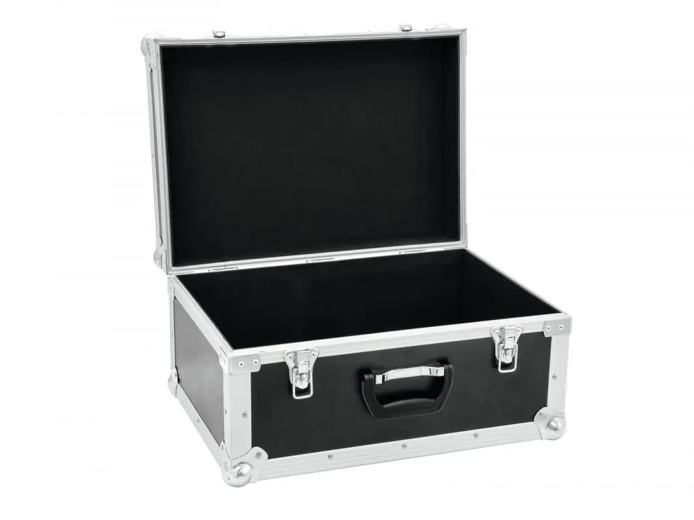 Interior upholstered with foam (black). High-quality workmanship with plywood multilayered glued, black laminated. Aluminum profile frames (25 mm) with rounded edges. Three-leg, medium-sized steel ball corners. 2 high-quality spring locks. Rugged handle.