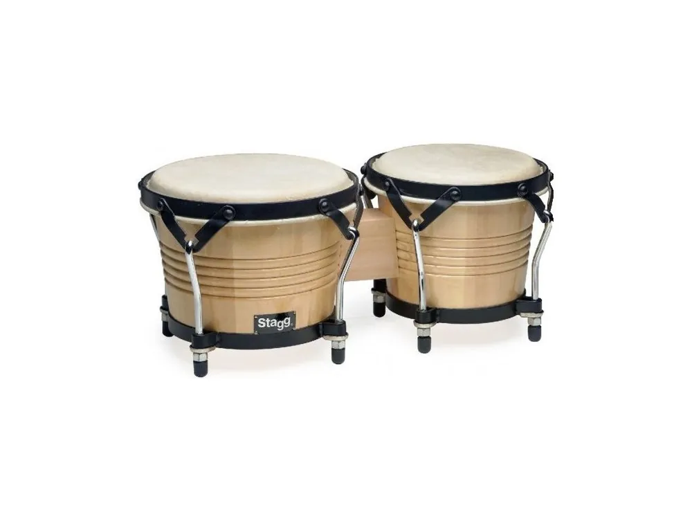 Bonga 7,5″ + 6,5″, dřevěné korpusy, laditelné blány, robustní ocelové chromové ráfky, barva přírodní. Blány z králičí kůže. Včetně ladicího klíče.