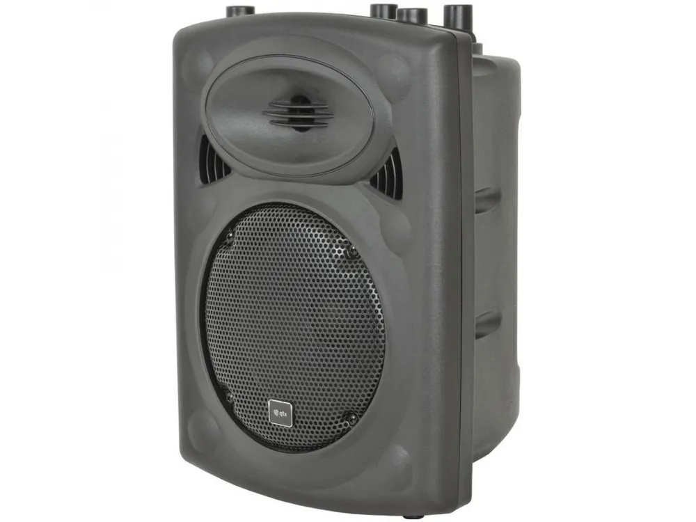 Plastový dvoupásmový aktivní 8″ reprobox s bassreflexovou ozvučnicí. Výkon 80W RMS, robustní plastové provedení. Ochranná mřížka středobasového reproduktoru, zapuštěná rukojeť, hnízdo Ø 35 mm pro instalaci na reproduktorový stojan nebo nástěnný držák, 1x mikrofonní vstup, linkový vstup a výstup RCA (L/R), ovládání úrovně signálu vstupních kanálů, 2-pásmové korekce. Titanový HF driver. Vhodný pro trvalé instalace i k mobilnímu využití.