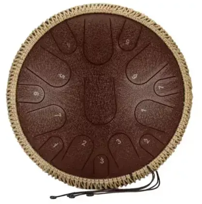 Fzone STD-14I15 Brown je takzvaný Steel Tongue Drum, což je perkusivní nástroj s melodickým a velmi zvláštním zvukem, charakteristickým například pro budhistické kláštěry. Tento model má průměr 14″ (cca 35,5 cm) a je vyroben ze slitiny oceli a titanu se speciální ochrannou povrchovou úpravou proti odření a usazování nečistot. Do těla bubnu je vyříznuto 15 jazýčků pro jednotlivé tóny ve tvarů různých lístků. Při úderu paličky či ruky se celý „buben“ rozezní a díky své konstrukci vydává velmi harmonický, kulatý a jemný zvuk. Skvěle se tak hodí například při józe, relaxaci či meditaci. Své uplatnění ale nalezne jak u sólového hráče, tak i v rámci kapely. Díky jeho přirozenému ladění je navíc možné na něj hrát i bez znalostí hudební teorie, což umožní tento nástroj využívat například při výuce. V balení je také pouzdro, dvě paličky s gumovou hlavou, šest gumových náprstků a silikonová nožka pro lepší stabilitu bubnu. Barevné provedení je Brown (hnědé).