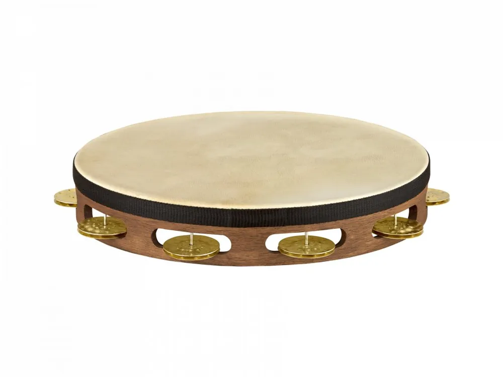 ,Diameter: 10″×Colour: Walnut Brown×Material: Hammered brass×Material: Handselected goatskin head×Material: Wooden frame×Features: Branded Logo×Features: Legendary tambourine sound×Features: Special profile jingles×Features: Detailed with hot-branded logo×,