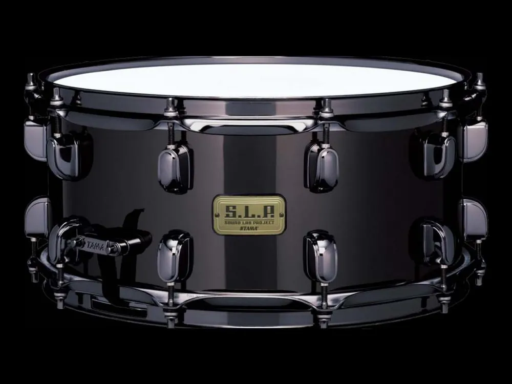 TAMA S.L.P. Black Brass – korpus bubínku je relativně silný – 1,5mm, černá mosaz produkuje tlustý, silný tón s teplou rezonancí – charakteristický právě pro mosaz. Z důvodu zachování otevřeného zvuku je bubínek osazen klasickými ohýbanými obručemi o síle 2,3mm, strunění má 42 pružin.