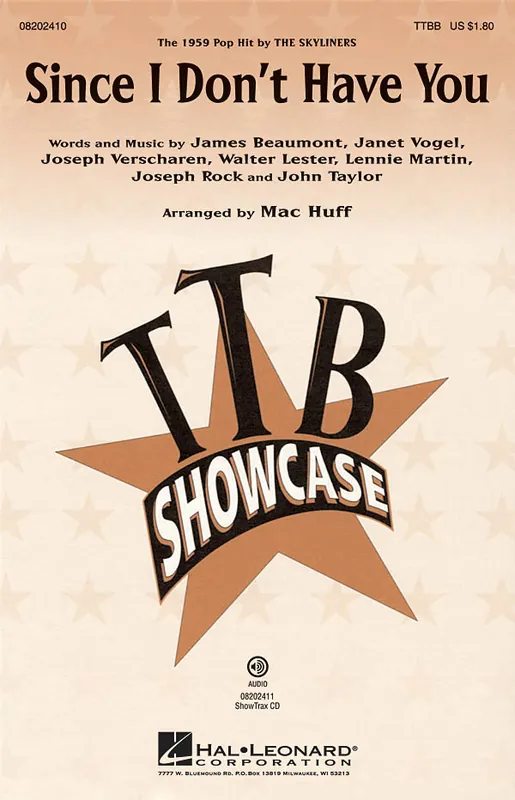 Tovární Cena SINCE I DON’T HAVE YOU / TTBB* + piano/chords