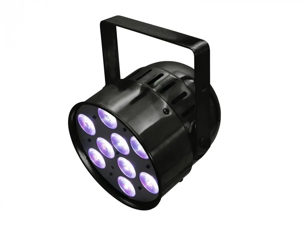 LED PAR reflektor je osazen výkonnými 9x8W QCL (RGBW) LED diodami s vyzařovacím úhlem 25°. Ovládání DMX (4/6 nebo 8 kanálů), režim Stand Alone s funkcí Master/Slave, zabudovaný mikrofon pro ovládání hudbou. Stmívání 0 – 100%, Strobo efekt. Pohodlné nastavení provozních režimů a DMX pomocí ovládacího panelu s LED displejem nebo IR ovladačem.