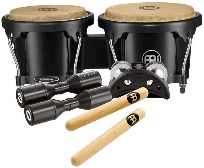 sada perkusní, ideální pro jamování nebo jakékoliv akustické vystoupení, obsahuje: HB50BK – cestovní bongo HB50, CFJS2S-BK – kompaktní nožní tamburína, SH4BK – Luis Conte Live shaker a klasické dřevěné paličky CL1HW