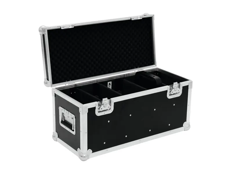 PRO flightcase for 4 PRO Slim spotsInterior devided for four PRO Slim spot lights Developed for 51842500 FUTURELIGHT PRO Slim PAR-18 TCL, 51842550 FUTURELIGHT PRO Slim PAR-12 QCL RGBW, 51842555 FUTURELIGHT PRO Slim PAR-12 QCL RGBA, 51842600 FUTURELIGHT PRO Pixel Slim PAR-12 TCL, 51842525 FUTURELIGHT PRO Slim PAR-36 CW/WW 4 compartments for spot lights 1 compartment for accessories High-quality workmanship with multiplex birch wood, dark brown laminated Aluminum profile frames (30 mm) with rounded edges Interior upholstered with foam Three-leg, medium-sized steel ball corners 2 hinges 2 butterfly locks 2 case handles Made in Europe