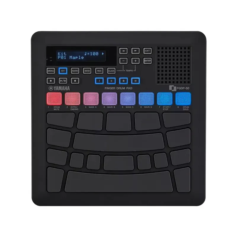 Ultimátní prstové bicí a perkusní padyYamaha FGDP nabízí ultracitlivé bicí pady v ergonomickém uspořádání, díky čemuž je toto zařízení ideální pro hru prsty. FGDP je navíc vybaven i tónovým generátorem, vestavěným reproduktorem nebo interní dobíjecí baterií. Díky těmto vlastnostem se jedná o nástroj typu vše v jednom, na který můžete hrát kdykoli a kdekoli. Rozložení padů je dokonale promyšlené a umožňuje tak hráči maximální výkon při bubnování prsty. Využívat můžete množství samplů od akustických bicích sad až po elektronické zvuky, které se skvěle hodí do jakéhokoli hudebního žánru.S FGDP máte jedinečnou svobodu přiřadit si zvuky k jednotlivým padům přesně podle své kreativní vize. Ideální způsob, jak rozehrát tyto perkusní pady je hra třemi prsty. Palec použijte na hraní basového bubnu a prostředníčky obou ruk hrajte hi-hat a snare. Díky ultimátní citlivosti jednotlivých padů budete moci bez problémů provádět jednou rukou všechny základní rytmy v osminových notách. Druhou ruku poté můžete využívat na hraní dalších symetricky rozmístěných padů a doplňovat tak základní hru o údery v šestnáctinových notách nebo dvojšlapkovém rytmu.Od běžných samplerů a MIDI padů se odlišuje FGDP právě rozmístěním, velikostí a dostatečným počtem jednotlivých padů, čímž se zařízení hodí perfektně pro prstové bubnování. FGDP je zkrátka uzpůsobeno pro nejlepší herní výkon.